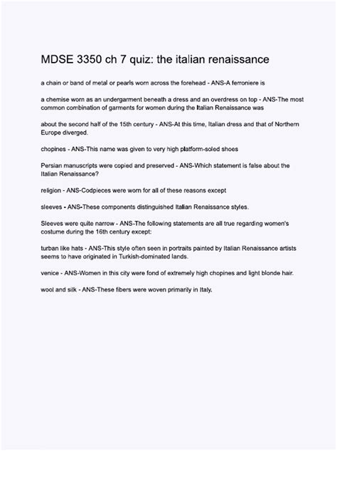 Read Online Italian Renaissance Answers Kindle Editon
