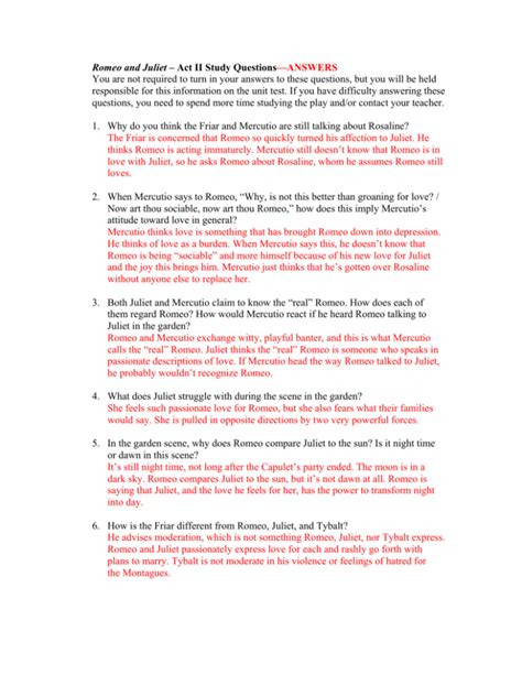 Read Online Romeo And Juliet Questions Answers Act 2 Epub